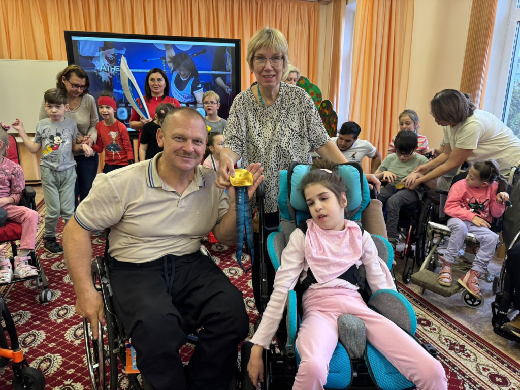 Сергей Валентинович рассказал ребятам о своём пути в спорт, о преодолении трудностей и о невероятной радости побед. Особый восторг у детей вызвали медали паралимпийца – ребята были изумлены их весом и великолепием!
